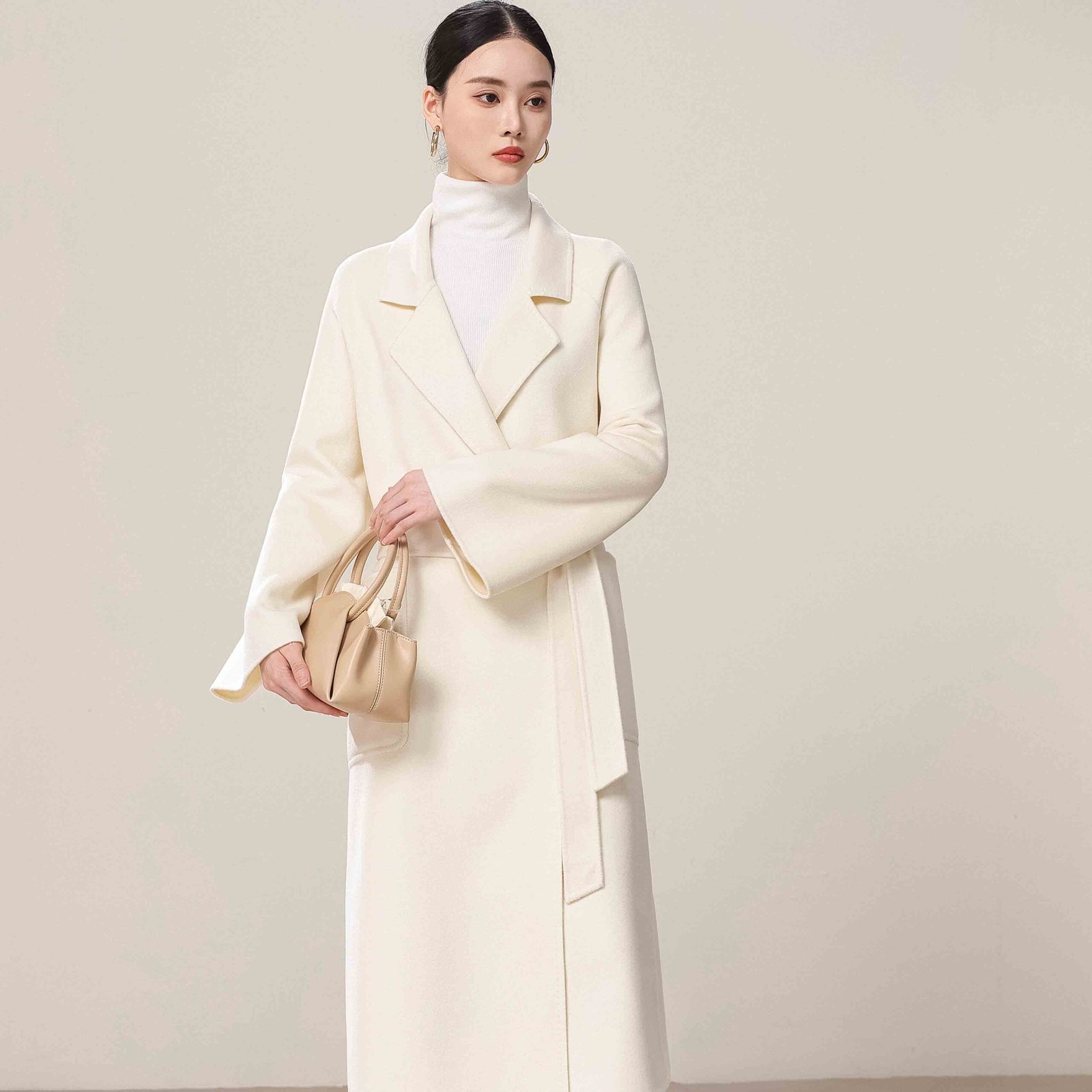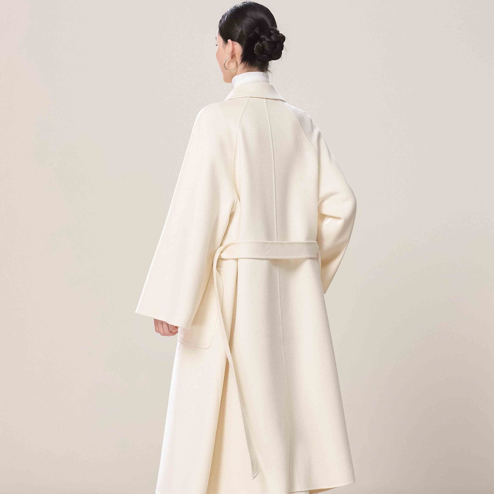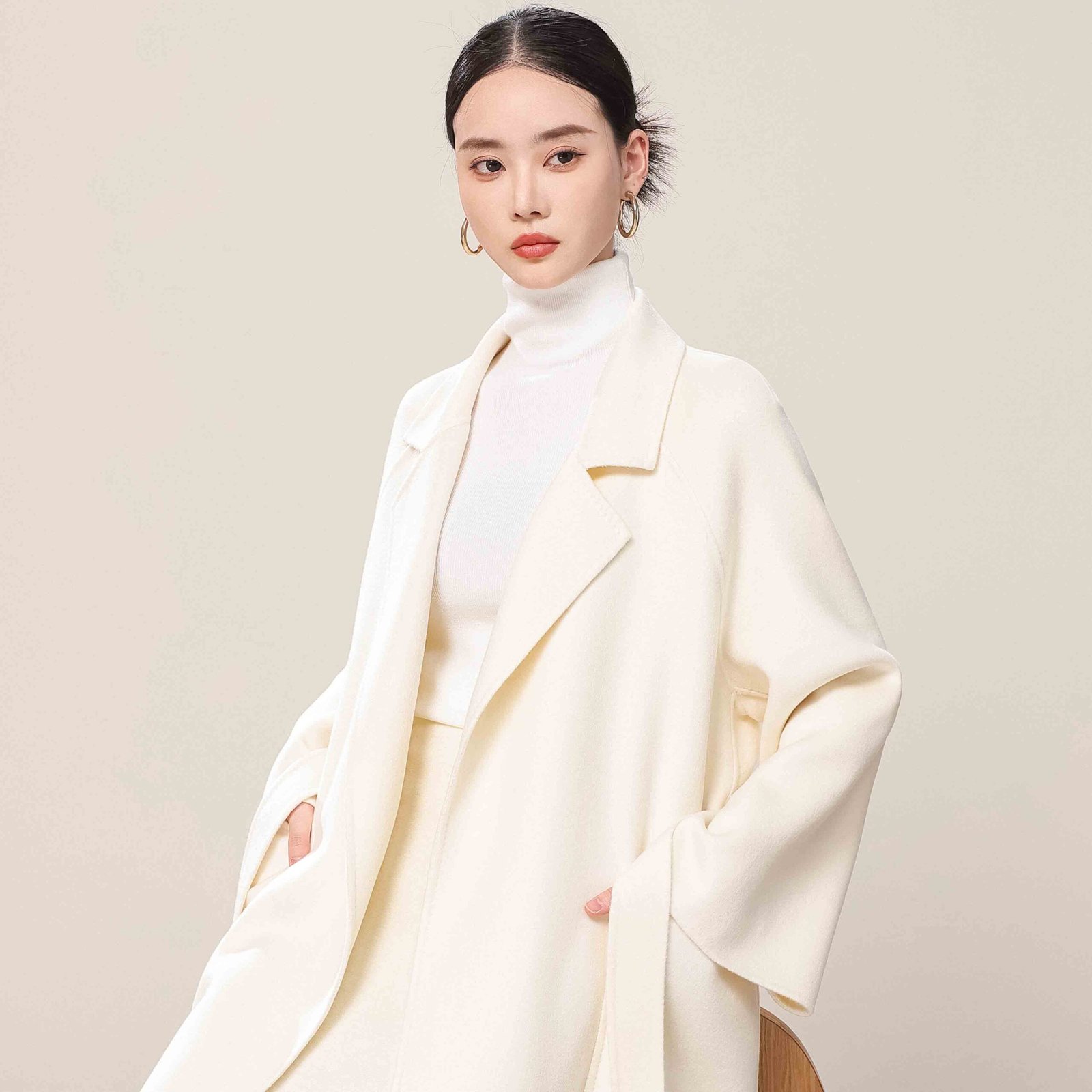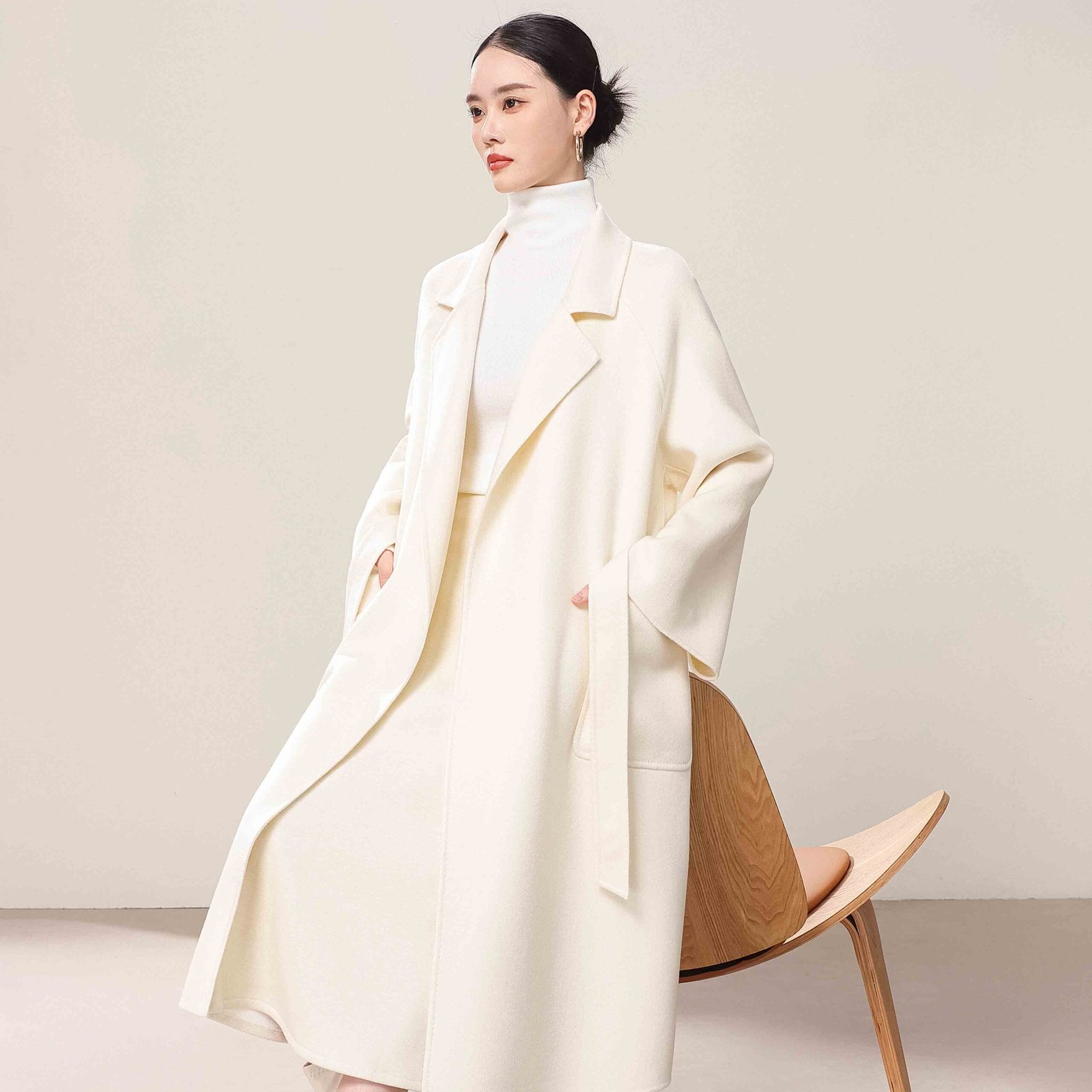 Jingshang has mature dyeing and spinning processes to ensure each batch of yarn has uniform color, stable structure, and delicate texture. Whether it is off-white, pure white, or custom colors, we can accurately achieve the desired result, ensuring each custom cashmere coat maintains high-quality standards.