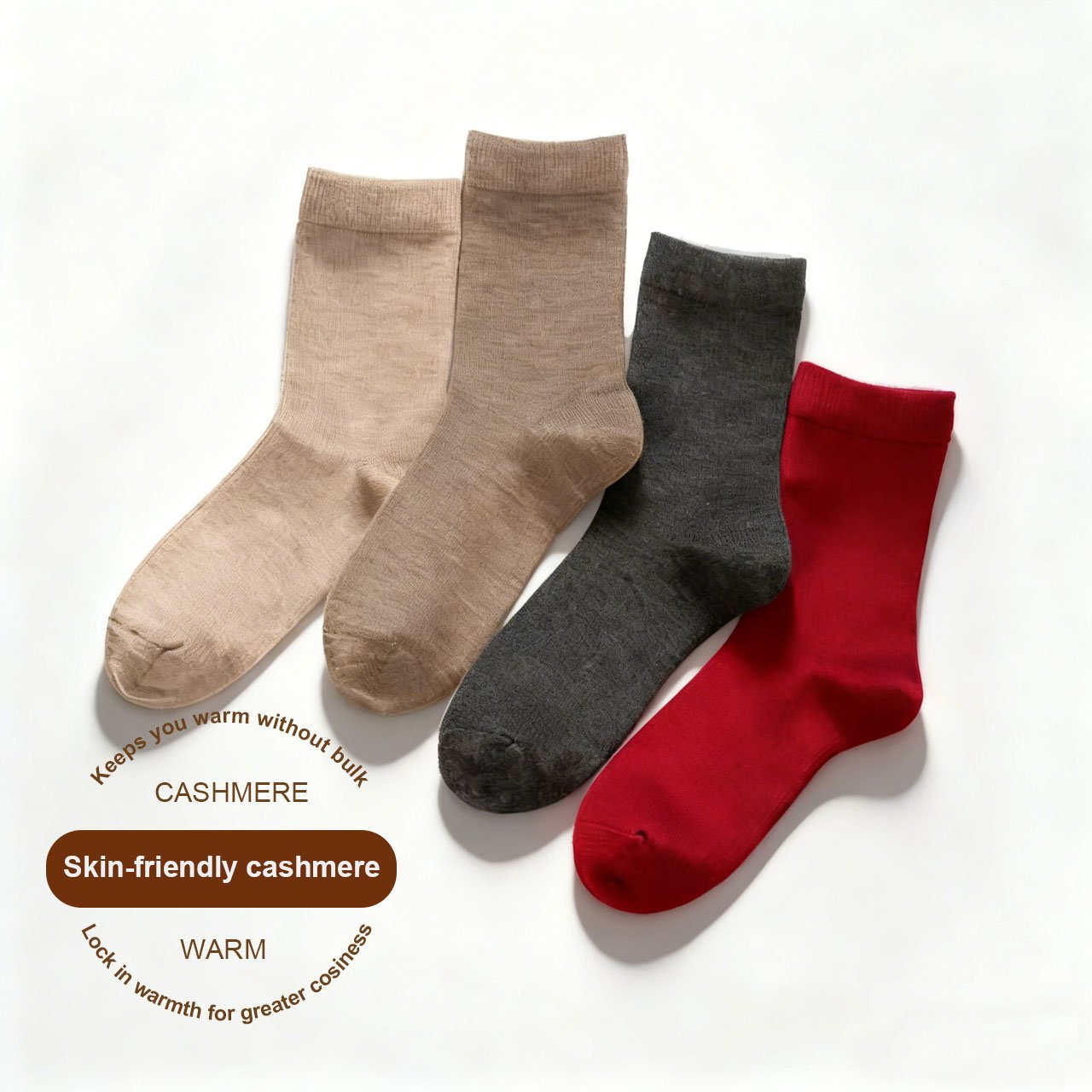 100% Pure Cashmere and Blended Options: Our cashmere socks support 100% pure cashmere and also provide blended yarns (such as cashmere + wool or cashmere + cotton) to meet different market needs. Customers can customize the blending ratio to make the socks soft, warm, and durable.